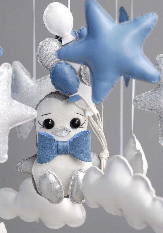 Movil pingüino con globos “ Llévame hacia las estrellas”