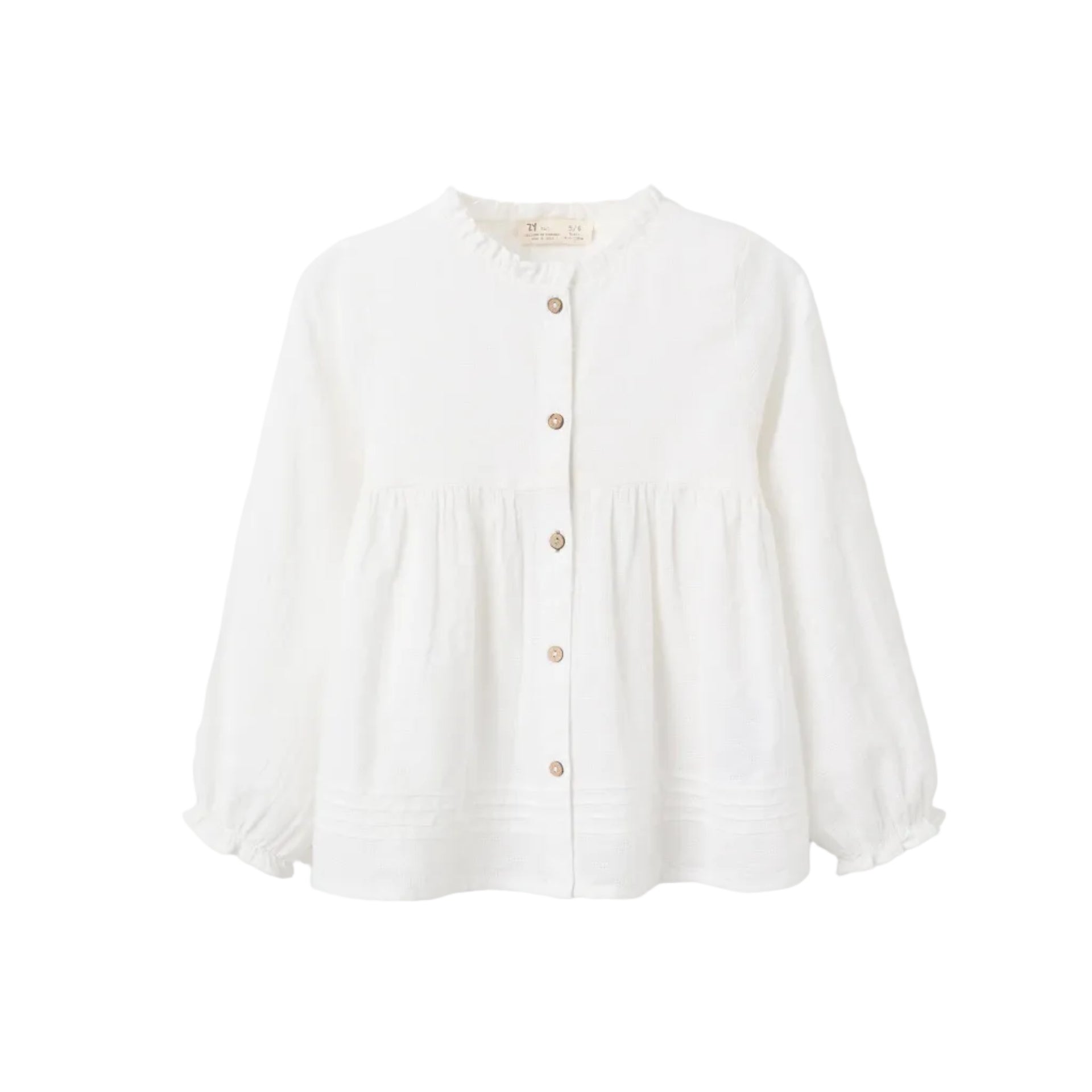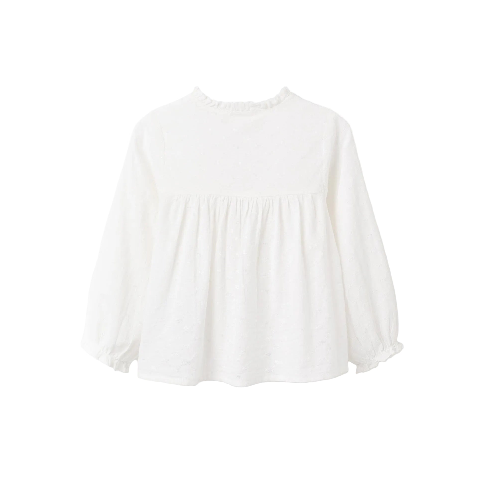 Esta es una blusa tipo bordada para niña en color blanco, perfecta para ocasiones especiales o para el uso diario.