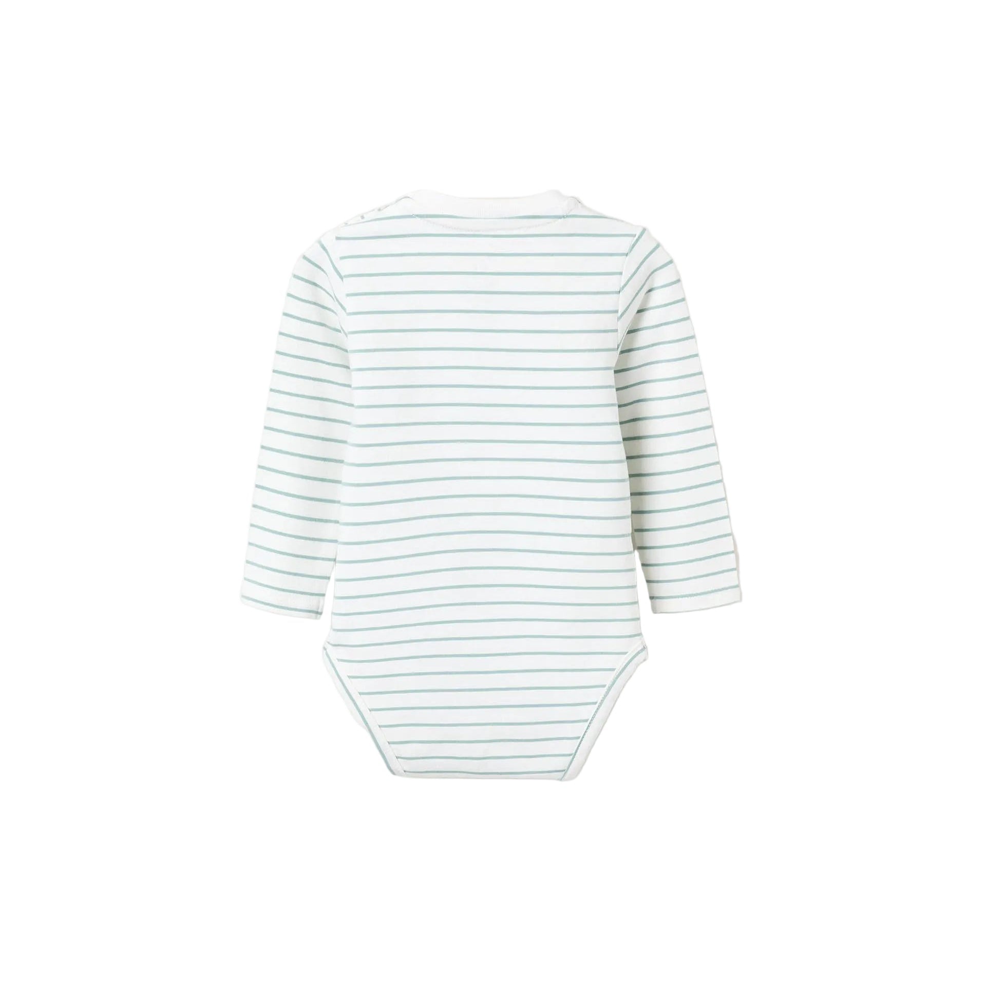 Body con lindo estampado a rayas. y con detalle de bolsillo con carita feliz, y botones a presión para fácil acceso en el cambio de pañal.