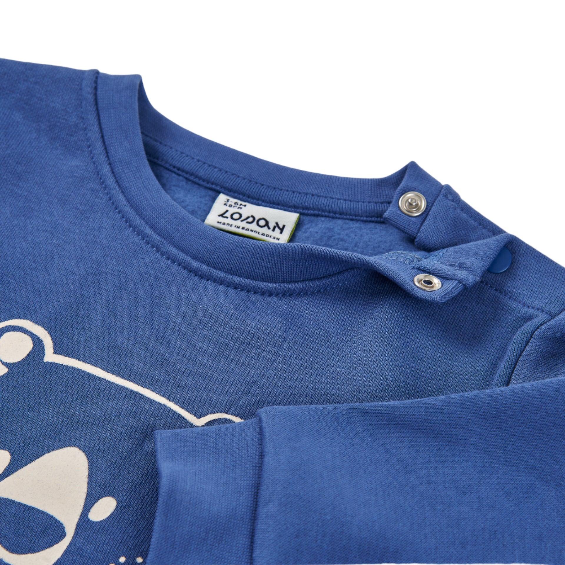 Buzo para niños pequeños con estampado de oso en tono azul , con lindo mensaje en la parte lateral de "HEY HOO!"