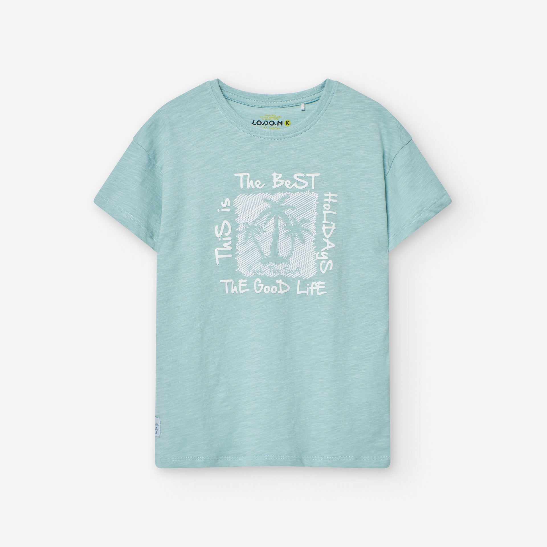 Camisa de manga corta y cuello redondo con lindo detalle estampado con mensaje,que recuerda a las palmeras el sol y las olas . Llévala con los shorts en lino de Losan para un look muy cómodo perfecto para el verano!