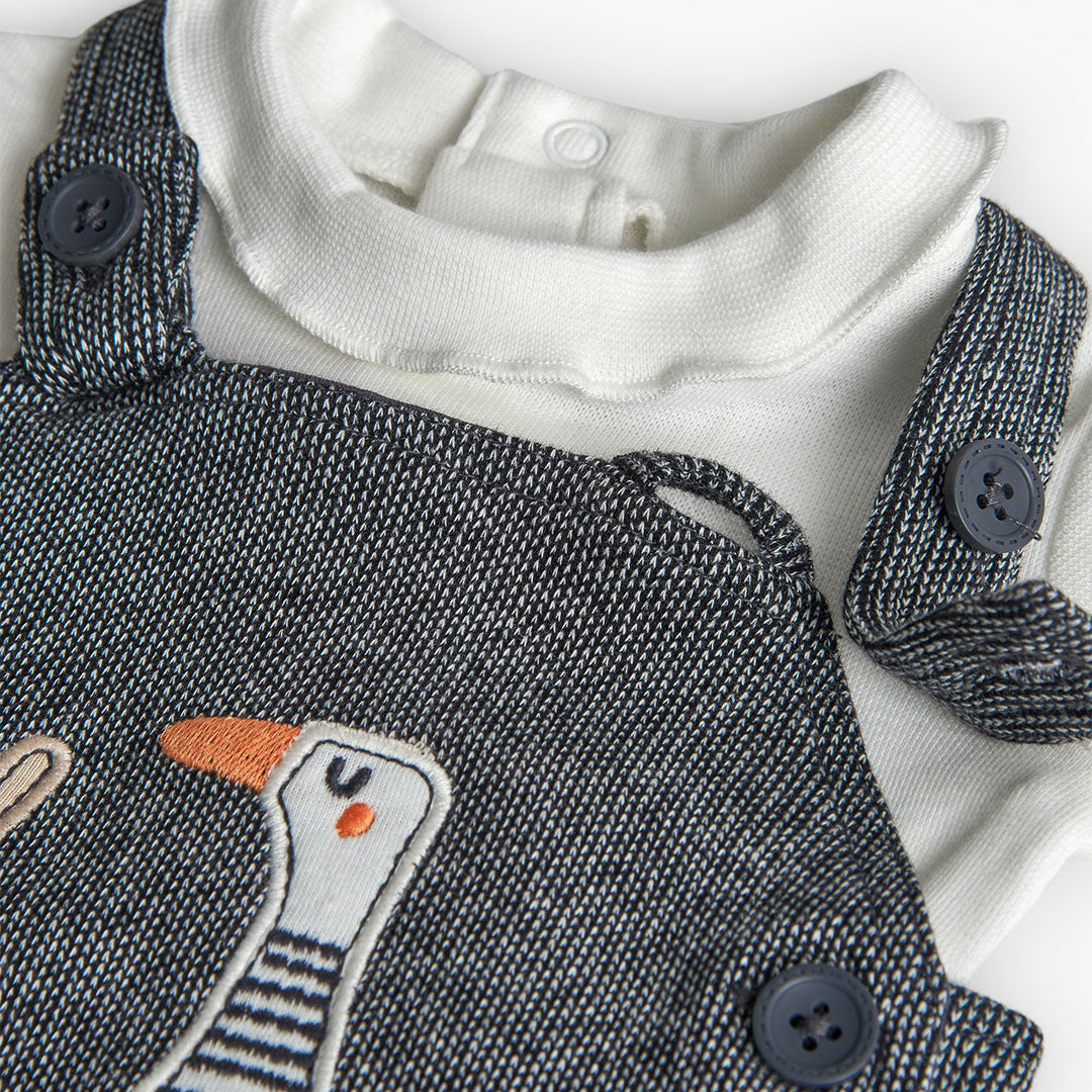 Este es un conjunto en algodón para bebé, ideal para las más pequeños. Su diseño presenta Amigos del bosque: conejito y ganzo, aportando un toque divertido y tierno. El cuello redondo y las mangas largas proporcionan comodidad y protección en los días de invierno. El tejido de punto en color gris es suave y cálido, perfecto para la delicada piel de los más pequeños. El cierre de botón facilita el vestir y desvestir. Este conjunto es una elección acertada para mantener a tu pequeña abrigada y con estilo durante la temporada de frío.