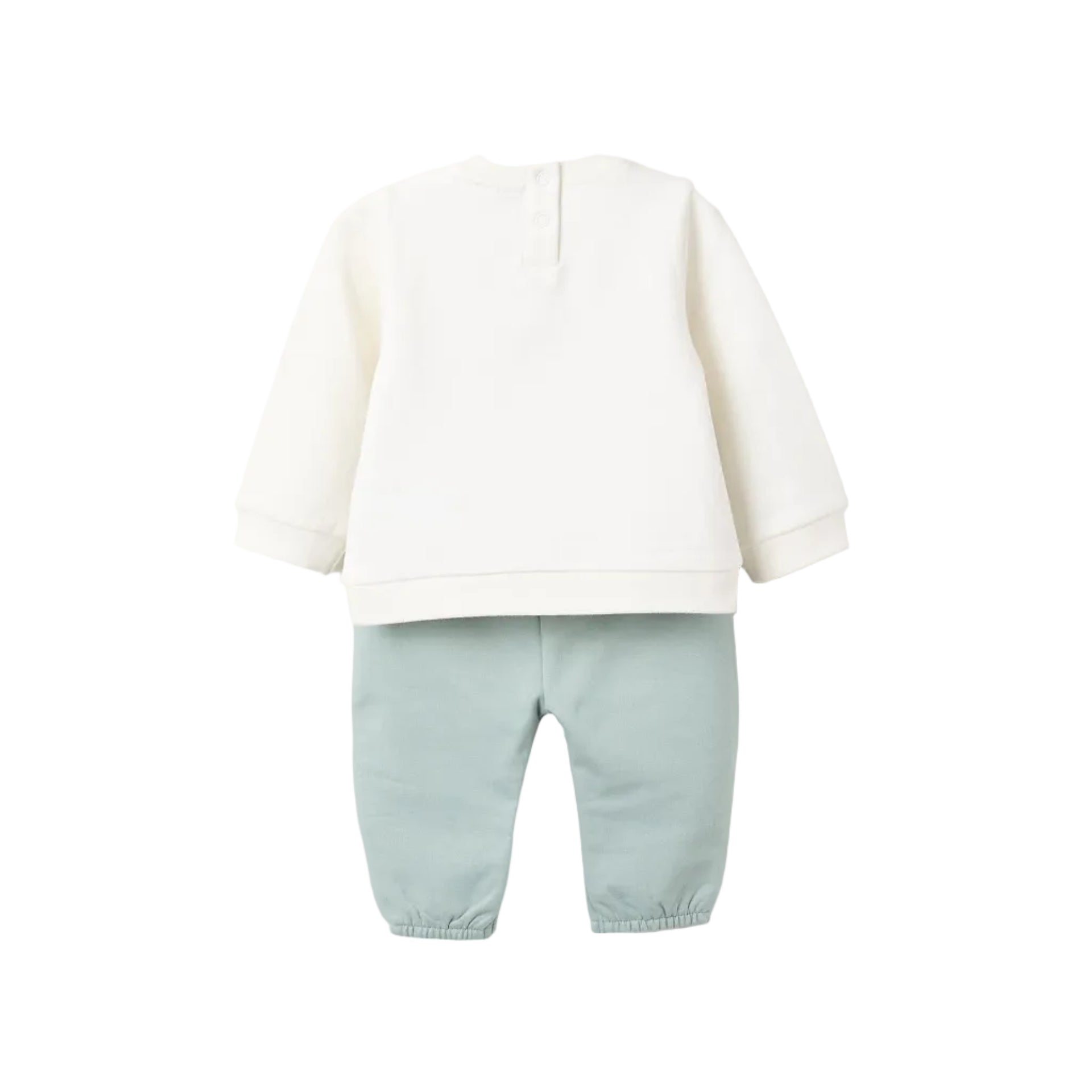 Este es un conjunto en algodón para bebé en color azul e Ivory, acompañado de pantalones de punto en tono verde-agua. La camiseta presenta un divertido diseño que incluye dibujos de winnie pooh, lo que la hace atractiva y alegre. Con cierre tipo boton en la parte trasera y divertido diseño.