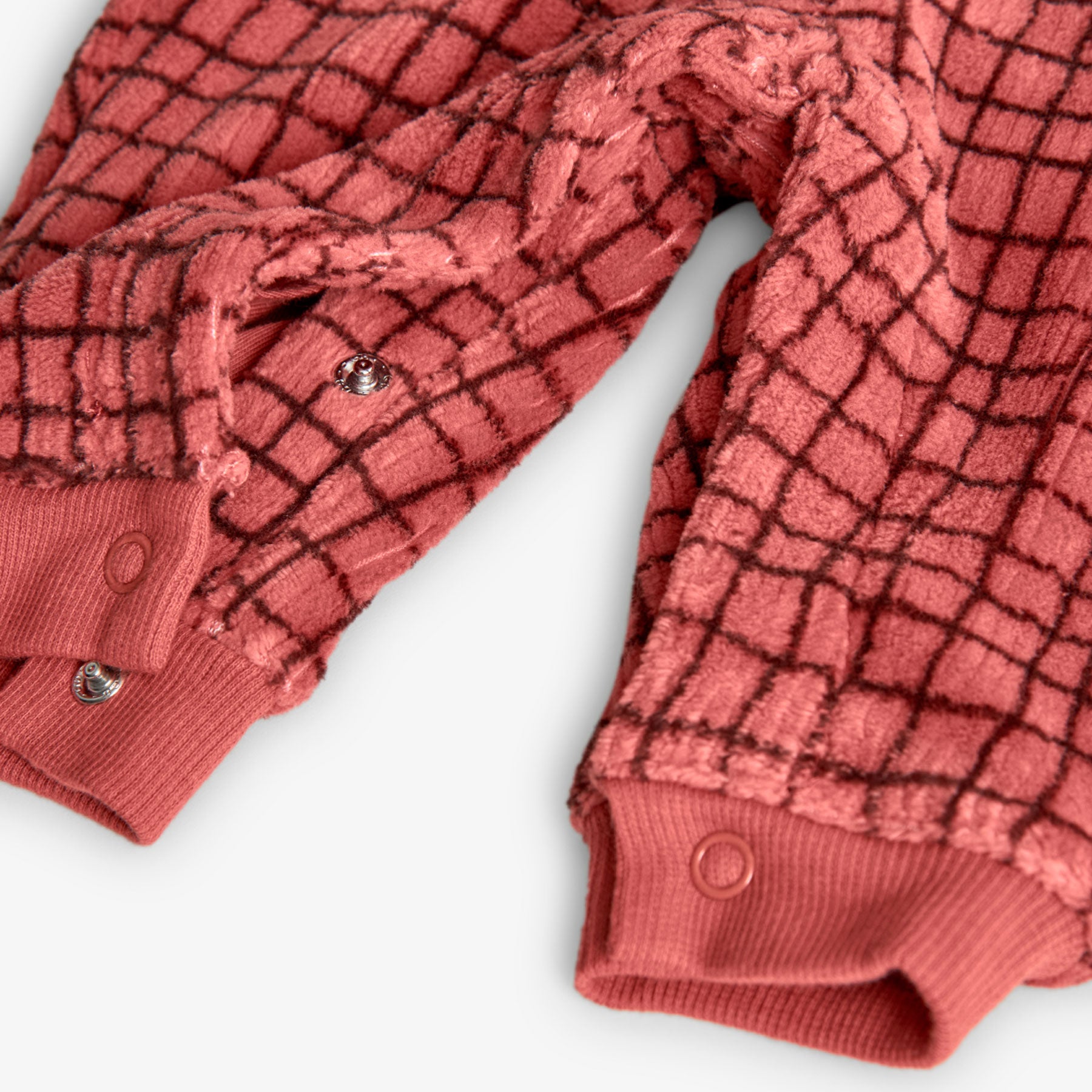 Este es un divertido overol con camiseta manga larga en un lindo tono terracota, que en la parte de atras viene cruzado para dar un toque mas Chic, tiene estampado de cuadros, atemporal para darle un toque tierno y vanguardista, el color terracota ayuda a que sea fácil de combinar ademas de detalles atemporales como botones clásicos.