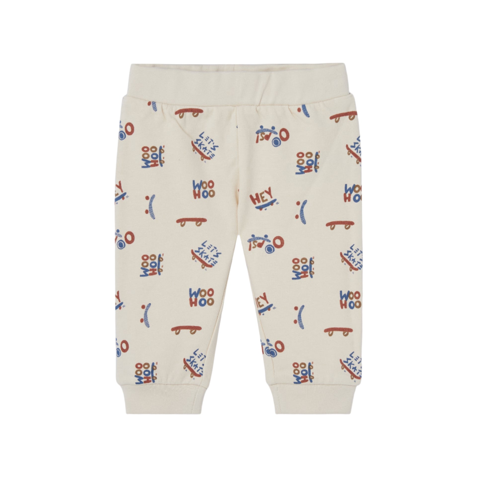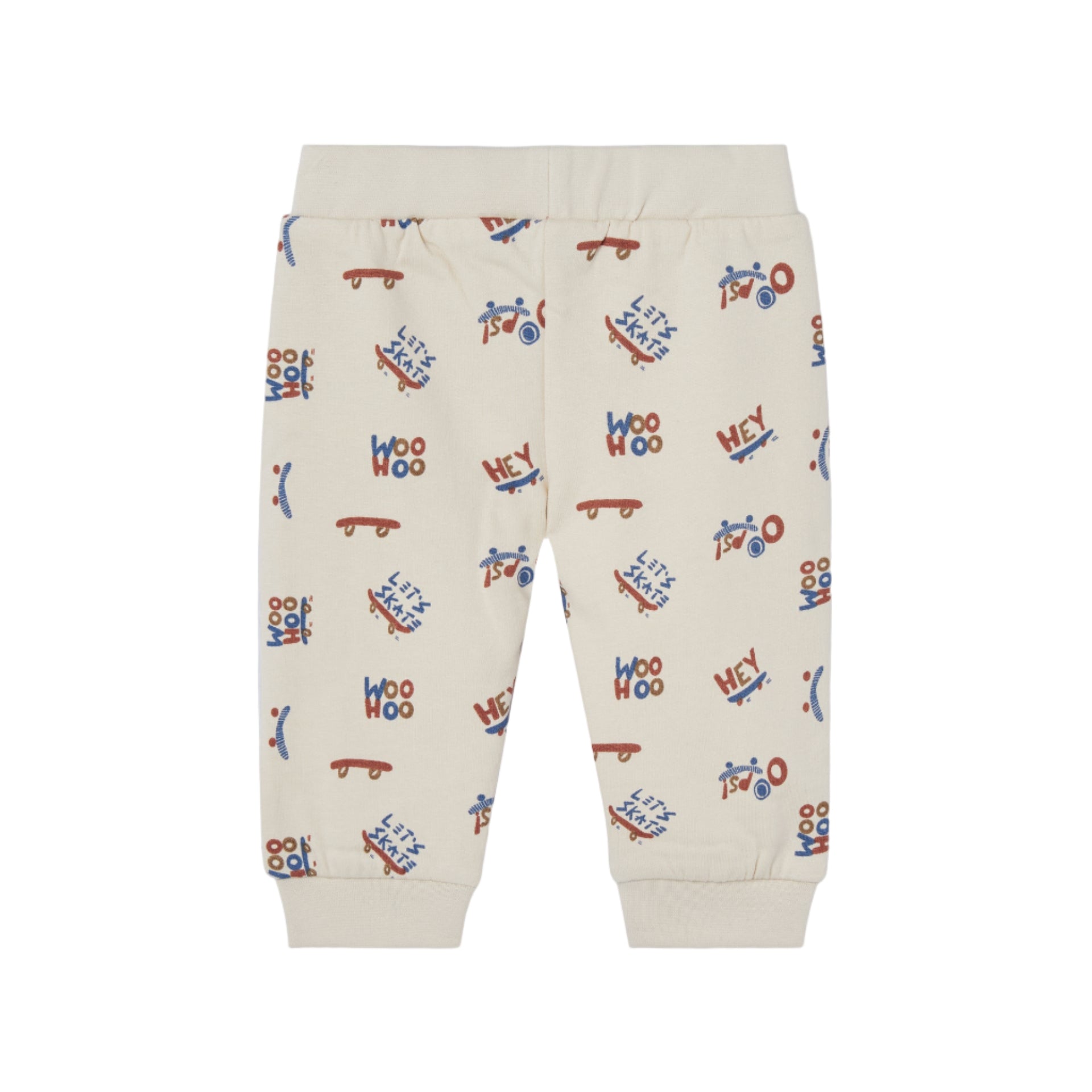 Pantalón en algodón, de color ivory y con un lindo estampado hey hoo. La cintura es de cáale al igual que los extremos. Un pantalón muy cómodo para tu bebé.