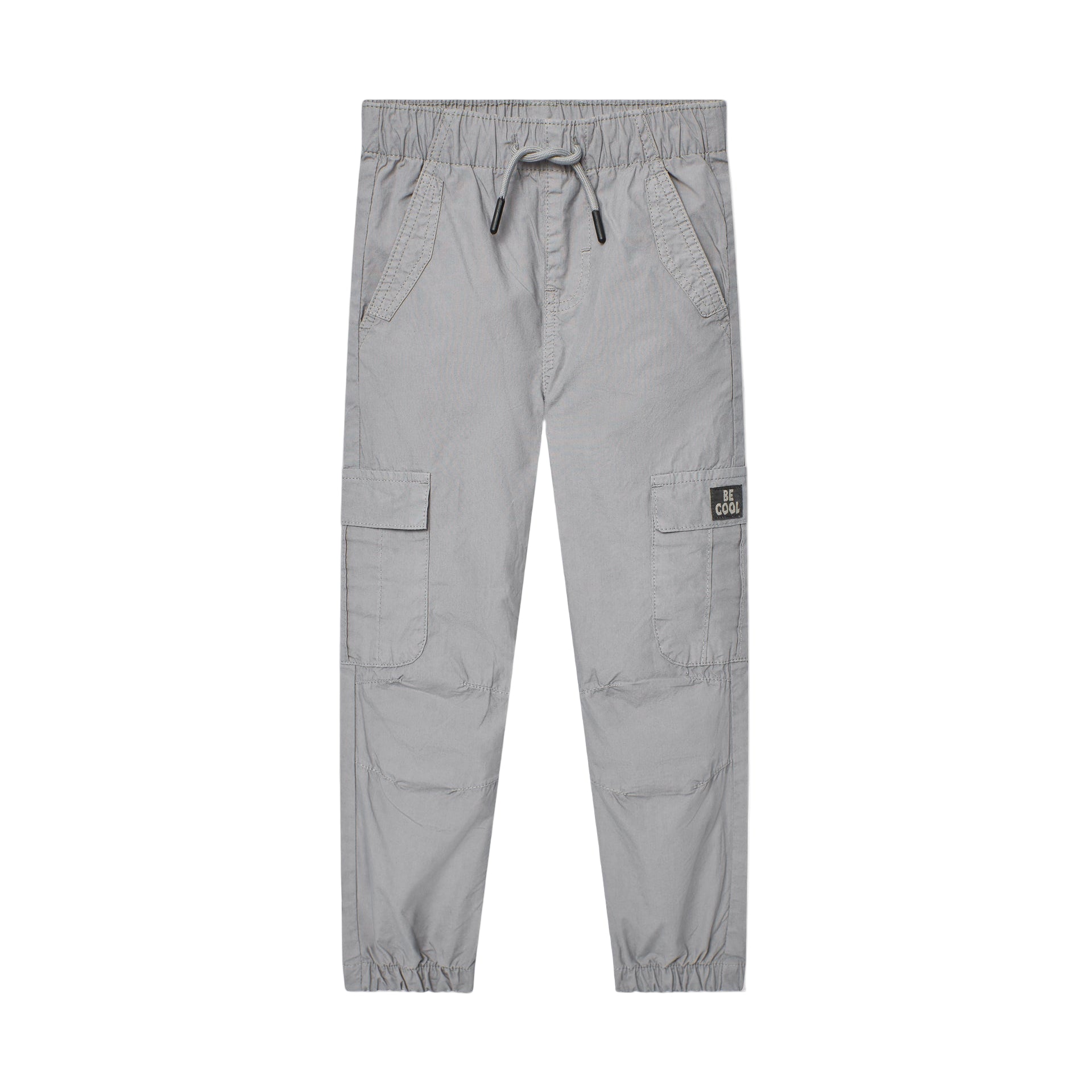 Pantalón de color gris con elástico para niño, personalizado de marca Losan. Trabillas en la cintura y ajustador interior de goma con cordón. Bolsillo trasero con estilo que tiene pequeño cierre de tela, ideal para salidas casuales o día a día perfecto para las pequeñas aventuras.