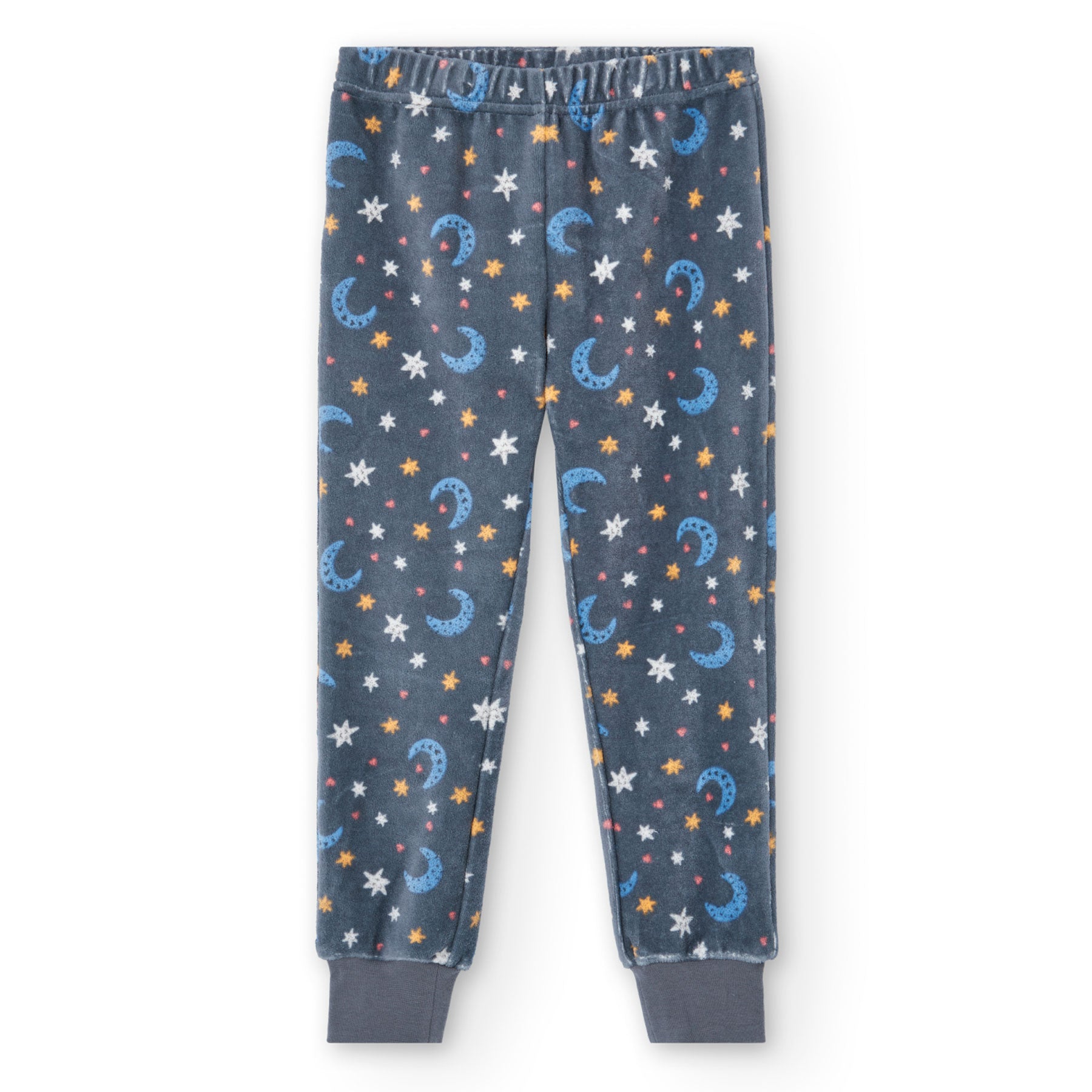 Pijama de terciopelo para niña ideal para las noches de invierno, ofreciendo calidez y suavidad excepcionales. Su diseño presenta adorables estrellas y lunas, creando un entorno acogedor y mágico para el descanso. Incluye una parte superior de manga larga y pantalones con puños, lo que asegura un ajuste cómodo y seguro durante toda la noche.