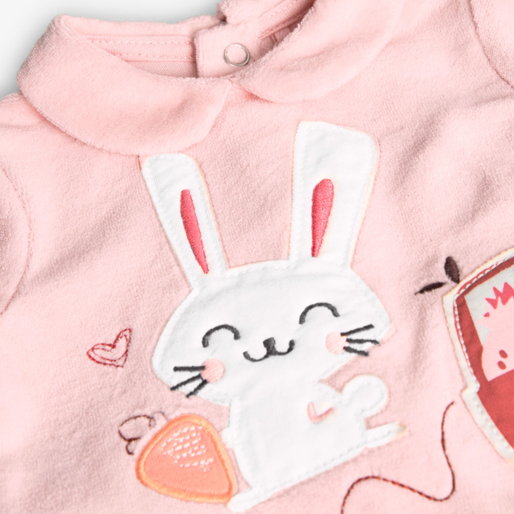 Esta pijama en terciopelo para bebé niña es ideal para las más pequeños. Su tejido de punto es suave y cómodo, perfecto para la delicada piel del bebé. El estampado añade un toque divertido y el cuello redondo con volantes facilita el vestir y da un toque chic. Las mangas largas son ideales para el invierno, manteniendo a tu bebé cálido. El color rosa claro es fresco y alegre. Esta pijama es una prenda esencial para el armario de tu bebé en los meses más fríos.